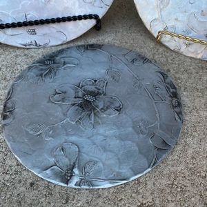 Vintage Silver Floral Trivet Set Home Decor Collectible Size: One Size