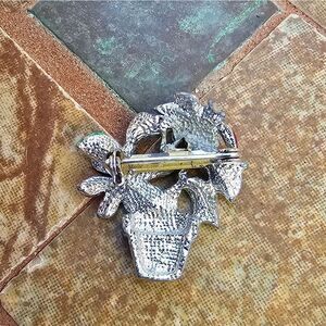 Vintage Silver Poinsettia Figural Holiday Christmas Brooch