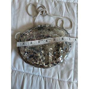 Excellent condition. Super cute silver sequin pouch with shoulder strap.