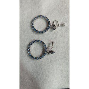 Elegant and timeless, these vintage screw-back earrings feature sparkling blue rhinestones set on silver-tone hoops. A classic touch for refined style.