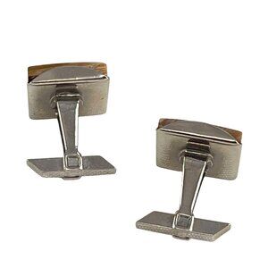Vintage Silver-Tone & Brown Swirled Rectangular Cufflinks For Men