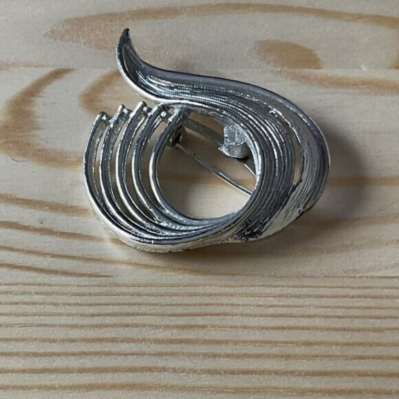 Vintage Silver-Tone Curved Wave Brooch Pin