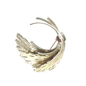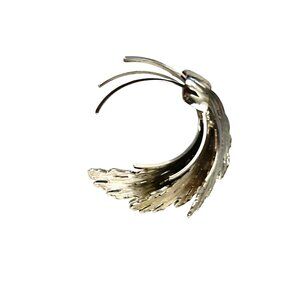 Vintage Silver-Tone Feather Brooch Pin With Detailed Textured Design