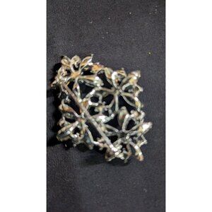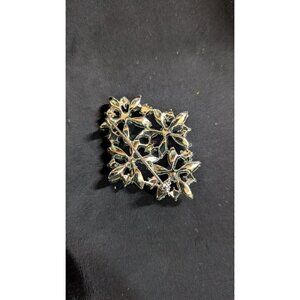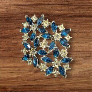 Vintage Silver-Tone Floral Brooch With Blue & Clear Rhinestones