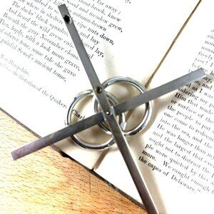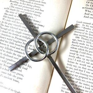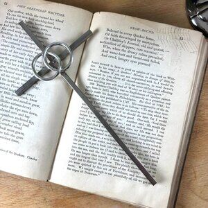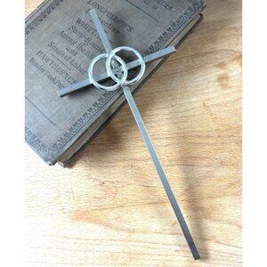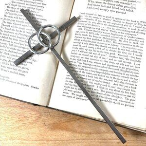 Elegant and meaningful, this vintage Marriage Cross features two interlocking rings at its center—symbolizing unity, eternal love, and shared faith. Crafted in silver-tone metal, the simple modernist form blends spiritual symbolism with minimalist design.