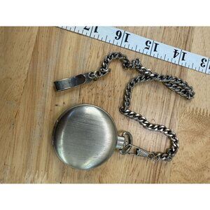 Vintage Silver-Tone Quartz Pocket Watch With Chain & Clip NOT TESTED