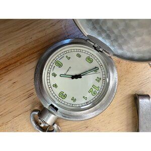 This quartz pocket watch offers reliable timekeeping with a timeless design. Featuring a durable chain and clip for secure attachment, it combines functionality with classic style.