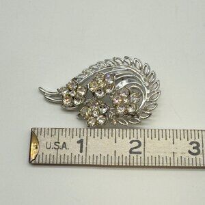 Add a touch of elegance with this vintage silver-tone brooch featuring a floral leaf swirl design adorned with sparkling rhinestones, perfect for any special occasion.