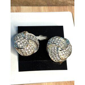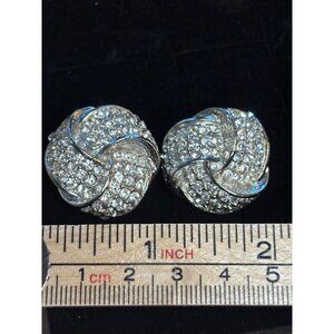 Vintage Silver-Tone Rhinestone Knot Clip-On Earrings