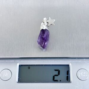This stunning pendant showcases a raw amethyst crystal accented by a delicate silver-tone star charm for a touch of whimsy. The natural beauty of the amethyst is highlighted by its unique texture, making this piece a standout addition to any jewelry collection. Perfect for everyday wear or as a thoughtful gift for crystal enthusiasts.