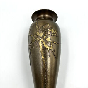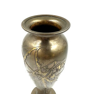Vintage Silvercrest Coated Bronze Vase Art Deco Brass Parrot Overlay 12"