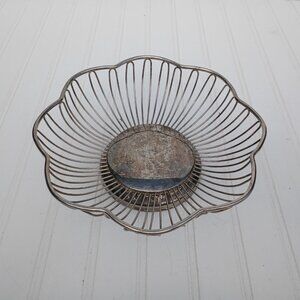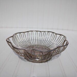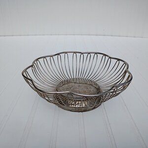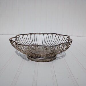 Vintage Silverplate Bread Basket Scalloped Fruit Bowl Wire Silverplated MCM