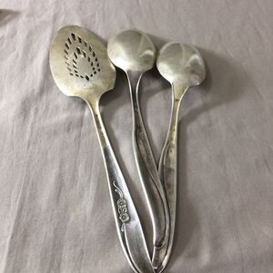 Vintage silverplate serving utensil lot in a pretty floral swirl pattern.