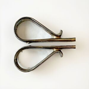 Good condition, tarnish is visible along with some staining. Fastener is secure.