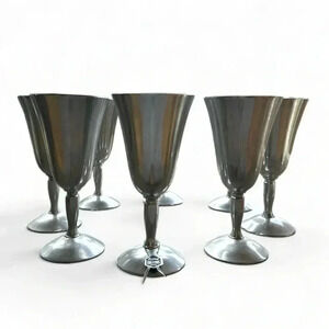 Plator Silverstone Metal Goblets Stemware VINTAGE Made in Spain Set of 8. Dimensions: 2 3/4" Round x 5 1/2" Tall