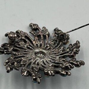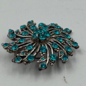 Vintage Silver-tone Brooch w/ Floral Pinwheel Design Aqua Blue Rhinestones