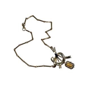 Add a touch of vintage glamour to your look with this stunning Silvertone necklace! This beautiful piece features a captivating aqua blue center stone, surrounded by sparkling rhinestones, all set in a classic 1950's design.