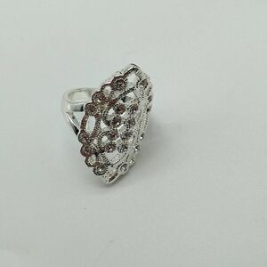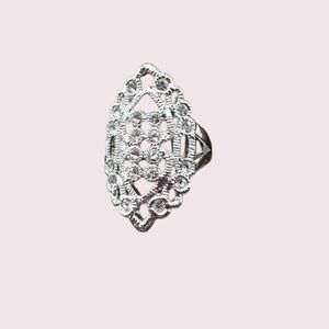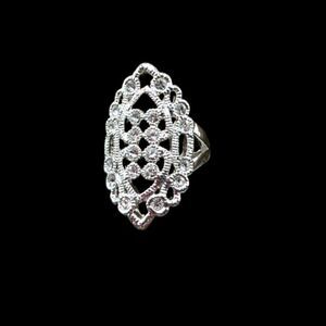 Vintage Silver-tone Rhinestone Filigree Ring Size 7.25