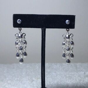 Vintage Silvertone and Rhinestone Chandelier Dangle Earrings (2in)