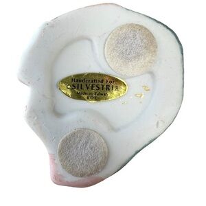 Vintage Silvestri Porcelain Orange Tabby Cat Ornament. A little ginger cat wrapped in a patchwork quilt.