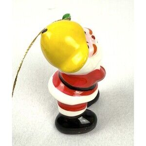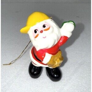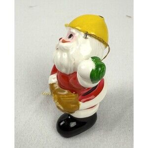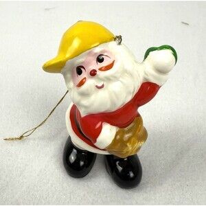 Add a unique touch to your Christmas tree with this vintage Silvestri ceramic Santa ornament. Featuring Santa dressed in a baseball uniform, holding a ball and mit, this ornament is perfect for sports enthusiasts.