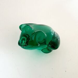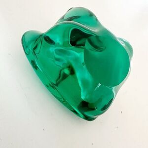 Crafted with meticulous attention to detail, this paperweight features a vibrant green hue that catches and reflects light beautifully, adding a touch of whimsy and sophistication to any space. The intricate design showcases a charming frog, expertly molded from high-quality glass to ensure both durability and visual appeal. Whether used to hold down important documents or displayed as a unique decorative piece, it brings a refreshing and playful element to your environment.