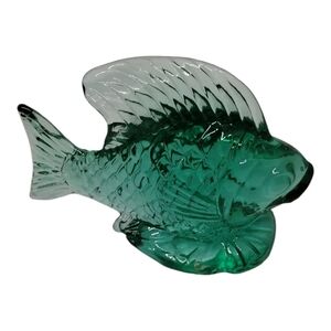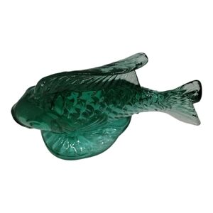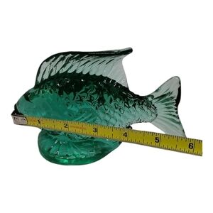 Beautiful handcrafted vintage green art glass fish. There is a small chip out of the bottom part of the pedestal, not noticeable (see 3rd to last pic). See last pics for measurements.