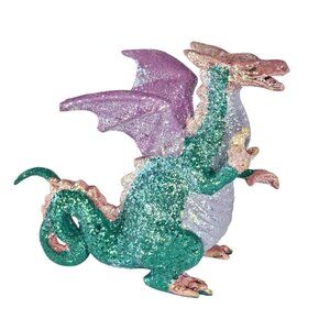 This charming dragon figurine features a shimmering design with purple wings and a green body. It adds a touch of fantasy to any setting.