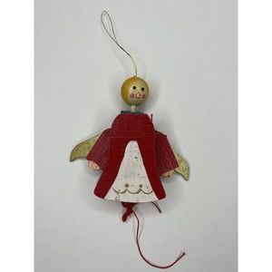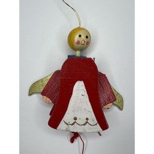 Vintage Silvestri Painted Wooden Pull String Angel Christmas Ornaments 4”