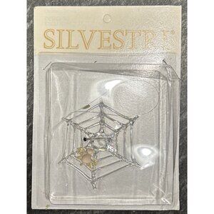 Vintage Silvestri Spun Glass Spider Web Christmas Ornament Gold Accents