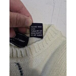 This Vintage Sim Sportswear Argyle Sweater is a classic piece with a preppy and academic vibe, perfect for a casual occasion. The sweater features a tight-knit design with an argyle/diamond pattern, long sleeves, a crew neck, and is made of a combination of cotton and acrylic material. It is in size Large and is machine washable, making it easy to care for. This pullover sweater, with a hipster and 80s theme, is a timeless addition to any wardrobe, ideal for the winter, fall, and spring seasons.
