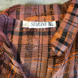 Vintage Simone NG Top Womens Medium Plaid Paisley Ethnic Asian Inspired