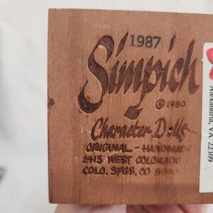 Some dings/marks in the wooden base, a little bit of paint missing in his hair and address sticker of previous owner on the base, see pics.