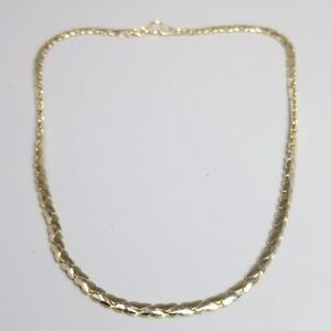 Vintage Simple Gold Tone Chain Necklace, Serpentine Pattern, 15 Inches Long