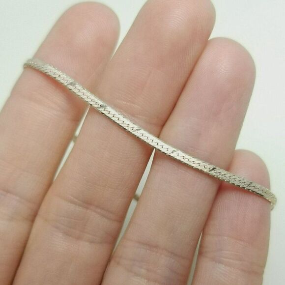Vintage Simple Sterling Silver Flat Chain Bracelet, Marked 925, 7 Inches Long