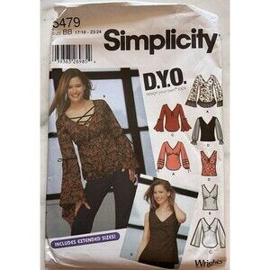 Vintage Simplicity Pattern 5479 Juniors Design Your Own Blouses Size 18-20-22-24 Y2K