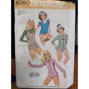 Vintage Simplicity Pattern 5760 Child's & Girls' Set of Bodysuits Size 12 (1973)