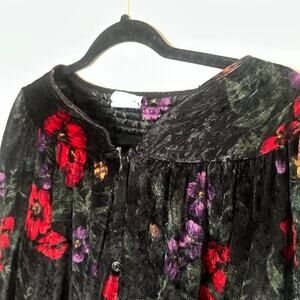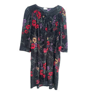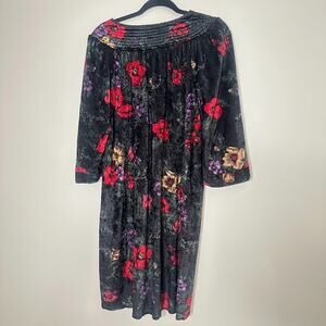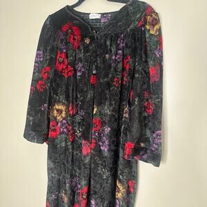Vintage Simply Basic Robe Housecoat Size 1X Velvet Mumu Grannycore Floral Snaps