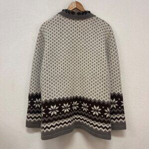 Vintage Sinclair Casual Knit Wool Gray & Creme Nordic Cardigan sz L (42-44)