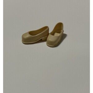 Original vintage Sindy doll shoes by Marx. Off-white slip-on heels, classic style, perfect for completing your vintage Sindy outfits or restoration projects.