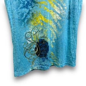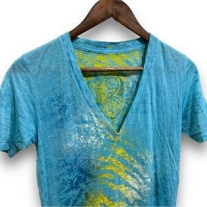 Vintage Sinful Women's All Over Print V Neck Shirt Lightweight Size M 17 x 27