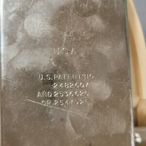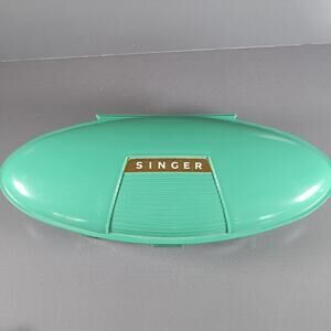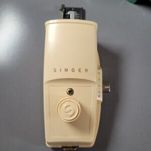Vintage Singer buttonholer attachment, model 489500, complete with the original green clamshell case and instruction manual. Made in the USA with patent numbers 2482607, 2536620, and 2547925. Ideal for Singer sewing machine enthusiasts or collectors of vintage sewing accessories. Case and attachment in good condition for age.