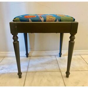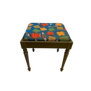 Vintage Singer Sewing Machine Stool Upholstered Seat with Vintage Bobbin Print