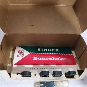 Vintage Singer buttonholer automatic attachment 1.1904 makes all buttonholes shown on the box. 489500 or 489510