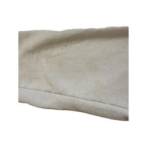 Condition: Fair pre-owned vintage condition. Noticeable stains and discoloration on sleeves and lower front; shown in photos. Some general fabric wear consistent with age. No holes or tears.