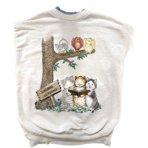 Vintage Singing Lessons Cats Sweatshirt Womens Medium White Crewneck Pullover 90s