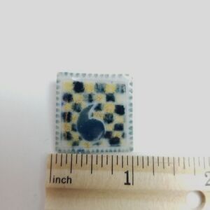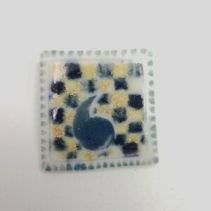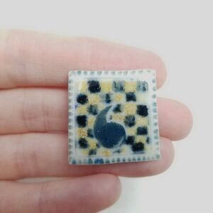Vintage Single Quotation Mark and Checkered Background Square Brooch, Handmade
