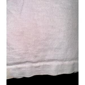 Has a faint pink color from color running in the wash, has small holes throughout and some staining. Very Worn in condition. Fair Condition.