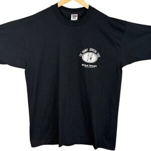 Fruit of the Loom Vintage Single Stitch Logo T-Shirt featuring The Danny Johnson Tribe graphic in white on a classic black tee. A timeless, laid-back piece with a vintage feel, perfect for casual days.