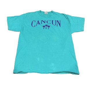Vintage Single Stitch Made In US Cancun Mexico Teal Shirt Distressed Size XL